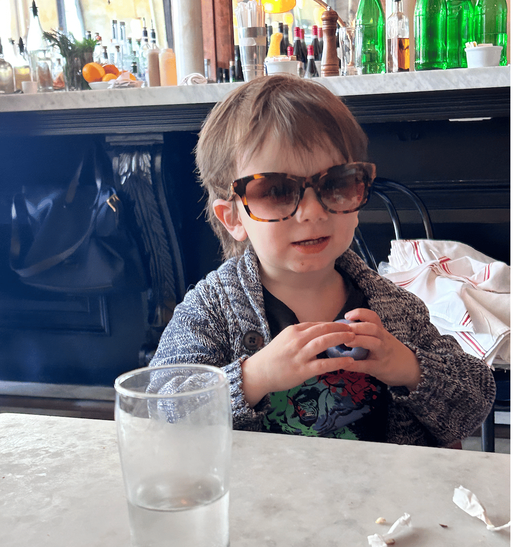 My nephew, bringing the necessary drama to storytelling, likely about dinosaurs and pizza